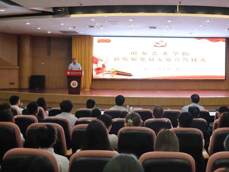 为庆祝中国共产党成立100周年,学习贯彻习近平总书记在庆祝中国共产党成立100周年大会上的重要讲话精神,7月1日上午,学校在长清校区图书馆报告厅举行新发展党员入党宣誓仪式。党委书记王洪禹出席仪式并讲话,党委副书记孔祥华主持仪式,党委委员、组织部部长、宣传部部长苏茂兴,各党总支书记、副书记,学生党支部书记,181名新发展党员参加仪式。