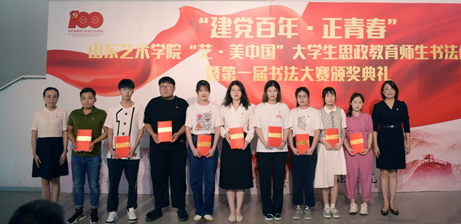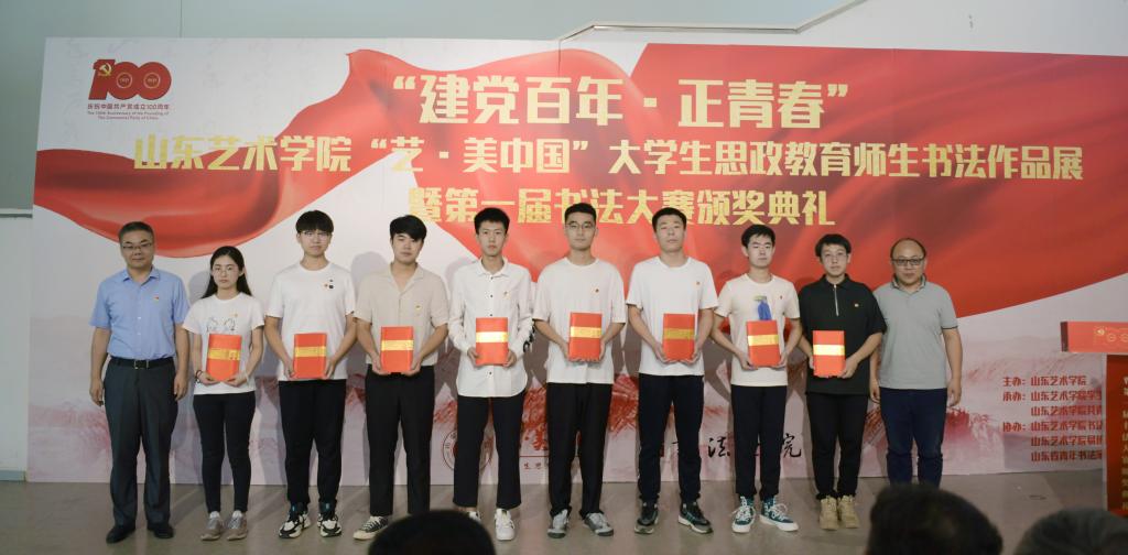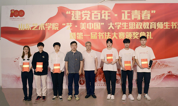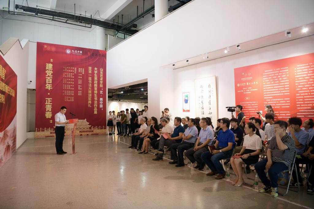 7月8日,为献礼党的百年华诞,以艺术呈现思政力量,“建党百年•正青春”山东艺术学院大学生思政教育师生书法作品展暨第一届书法大赛颁奖典礼在长清校区美术馆举行。山东艺术学院院长徐青峰,党委副书记孔祥华,中国书协副主席、省书协主席、书法学院院长顾亚龙,党委委员苏茂兴,中国书协会员、省青年书协副主席、山东画院山东书法院秘书长刘上林出席典礼。学校相关职能部门负责人、书法学院党政负责人,二级学院学工干部代表、学生代表参加活动。典礼由书法学院党总支书记李付魁主持。