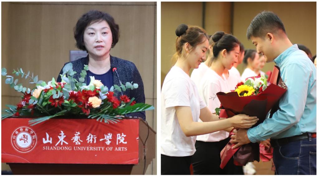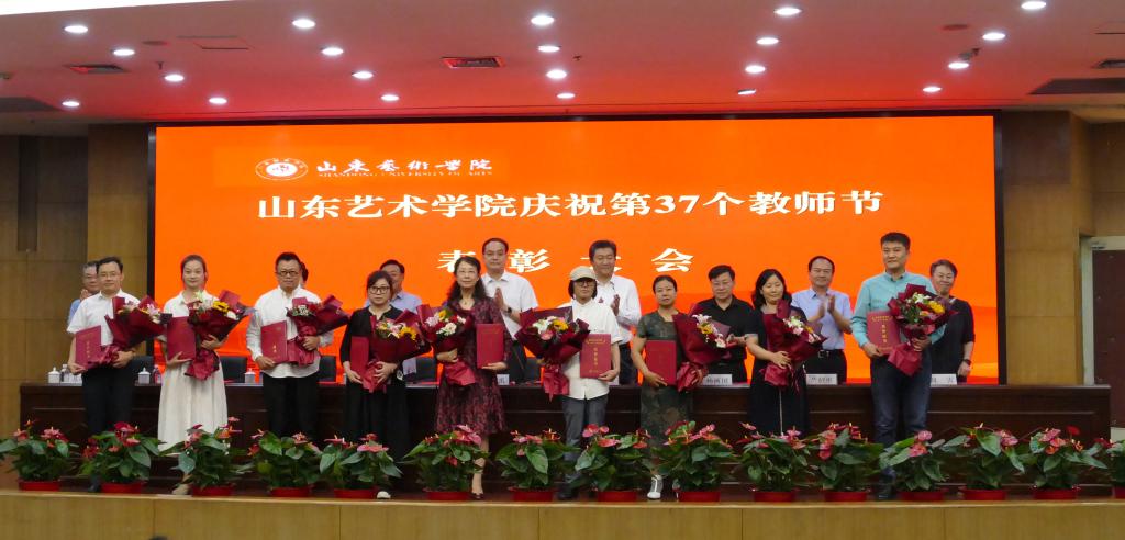 王洪禹代表学校党委向辛勤耕耘在教学、科研、管理、服务各岗位的全体教职员工致以节日的问候和崇高的敬意。他指出,山东艺术学院素有尊师重教的优良传统,学校63年的发展历程中涌现出许多德艺双馨的教师典范。今年学校制定《山东艺术学院关于荣誉体系建设的若干规定》,隆重举办教师节表彰大会,首次评选表彰“四有”好老师、干事创业优秀工作者,就是为了进一步营造尊师重教的良好校园生态,引导广大教师切实落实立德树人根本任务,激发广大教师的荣誉感、获得感,增强向心力和凝聚力,引导师生员工时刻坚守理想信念,筑牢师德师魂,贡献学校发展,促进学生成才,让尊师重教成为校园最美的风尚。
