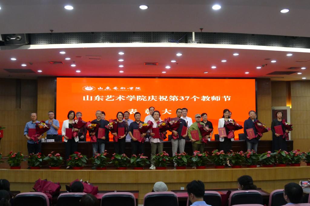 会上,孔祥华宣读《山东艺术学院“四有”好老师、干事创业优秀工作者的决定》。大会对评选出的王瑶、池灏、张骁将、远宏、王伟、马嘉、宋法刚、秦建伟、陈靖、周爱华10名“四有”好老师,吴兴君、董文化、史长春、李新良、陈秀芹、万慧、董睿、谭玲玲、杨林杰、张艳10名干事创业优秀工作者,从教满三十年教师牟楠、于莉莉、赵勇、谭开界、池灏、巩若强、刘键、朱旭、杨海、王凤苓、彭丽、刘德卿等进行隆重表彰。王洪禹、徐青峰等向受表彰教职工颁发荣誉证书。学生代表向受表彰人员献花,表达对老师的敬爱与节日的祝福。