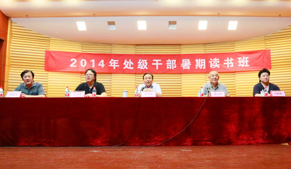 9月4日至5日,我校2014暑期处级干部读书班集体学习活动在文东校区综合楼一楼音乐厅举行。党委书记李宗伟,院长张志民,党委副书记王力克,副院长刘大力、刘晓静、高启光出席活动。