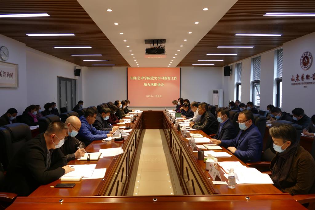 会上,下发了《山东艺术学院贯彻落实全省党史学习教育领导小组办公室主任视频会议精神工作方案》。戏曲学院党总支、城市艺术与创意学院党总支、电影学院党总支、马克思主义学院党总支、离退休党委汇报交流了党史学习教育工作开展情况。
