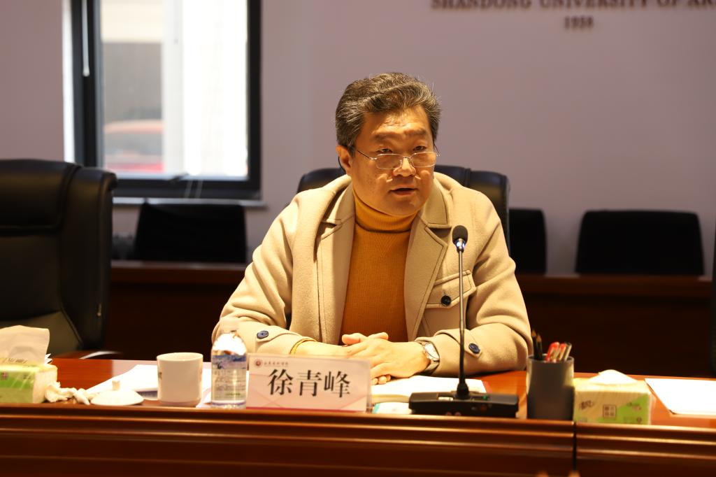 徐青峰分享了现场聆听习近平总书记重要讲话的感想,通过回顾历届文代会召开的历史背景和意义,结合时代特征和时代需求理解本次文代会召开的重要意义。徐青峰就贯彻落实习近平总书记重要讲话精神提出三点要求,一要进一步明确高等艺术教育的方向和内容。艺术院校的教师既要坚持艺术创作,又要教书育人。“立德树人的人,必先立己;铸魂培根的人,必先铸己。”现在的学生是未来社会的主力军,我们要传授给他们什么样的知识,使其具备什么样的素质,才能支持他们今后的创作,这是每一名高校教育工作者必须明确的重点。二要深入生活,扎根人民,推出更多精品力作。艺术创作的技艺固然重要,但更重要的是作品背后的精神能量和文化内涵,要深刻理解艺术创作的目的和意义,才能创作出更多有感染力的艺术作品。三要结合山东省文艺工作要求,积极为全省文艺事业繁荣发展贡献力量。要将文艺创作与山东厚重的历史特色相结合,坚持守正创新;要聚焦新型城镇化人群,创作更多更贴近人民、贴近生活的艺术作品;学校要制定艺术创作的五年工作计划,各学院也要制定出各自的五年实施方案,用更多精品力作担当起文艺创作的山艺责任。