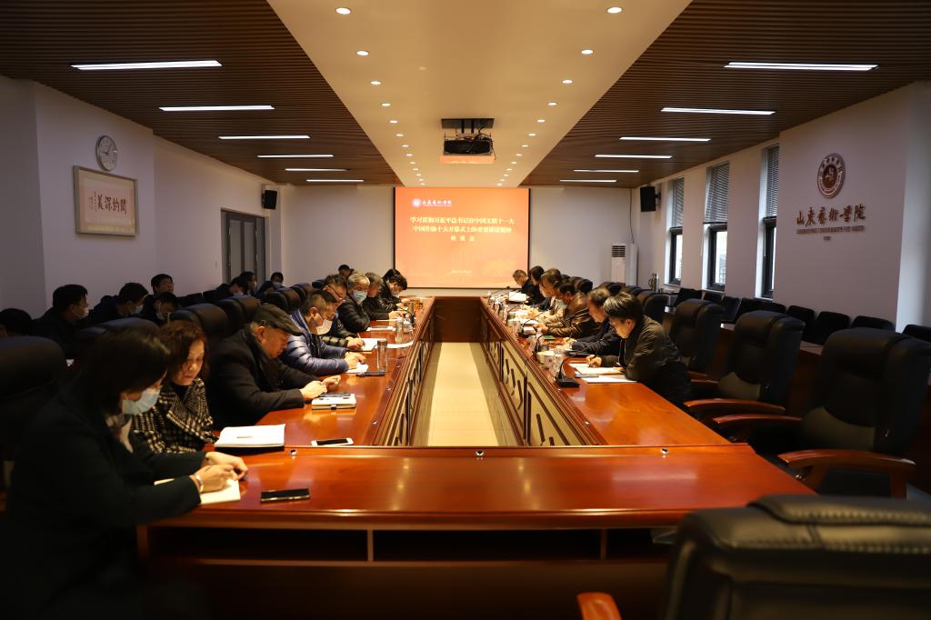 12月22日,学校在长清校区召开学习贯彻习近平总书记在中国文联十一大、中国作协十大开幕式上的重要讲话精神座谈会。院长徐青峰出席会议并讲话,党委副书记孔祥华主持会议,党委委员、副院长杨西国、兰绍彤,党委委员、纪委书记、省监委驻学校监察专员胡凤莹,党委委员荆雷、苏茂兴出席座谈会。各二级学院院长、相关职能部门负责人参加座谈会。