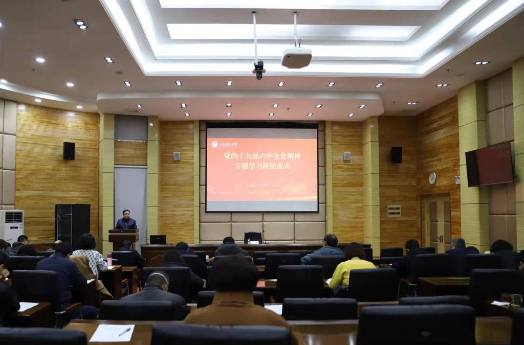 12月23日下午,学校党的十九届六中全会精神专题学习班在长清校区举行结业式。党委副书记孔祥华主持结业式并讲话,党委委员、组织部部长苏茂兴,全体副处级干部参加结业式。