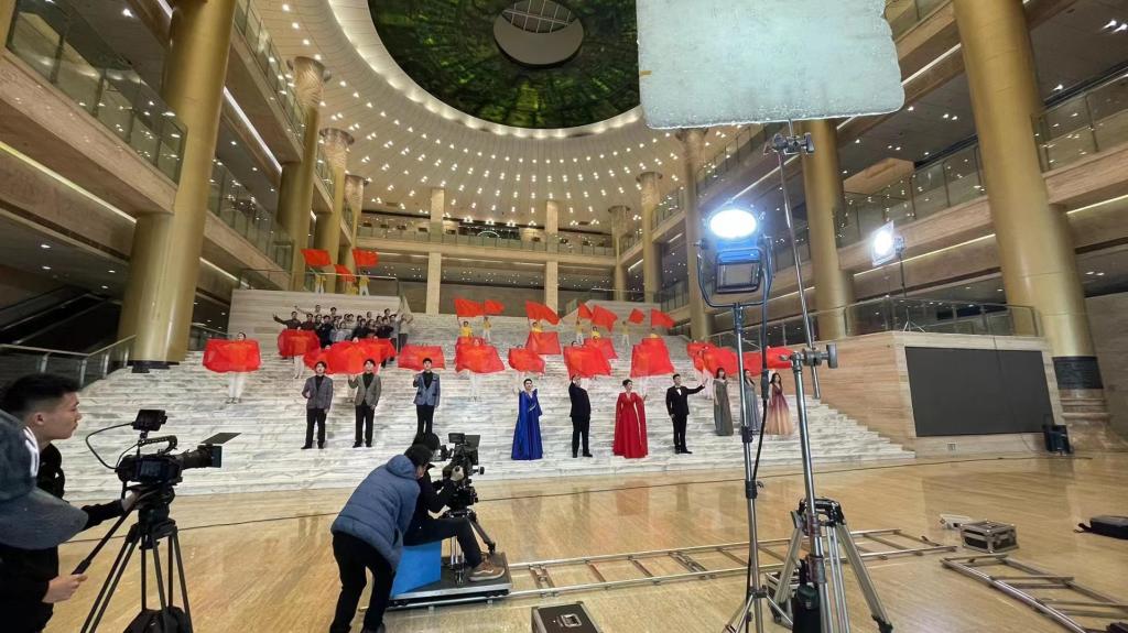 《领航》MV由学校领导策划,艺术实践与创作处、舞蹈学院负责人导演,音乐学院教师李鳌、袁野,现代音乐学院教师孙露,音乐学院研究生吴振飞担任领唱,我校TOP合唱团、音乐学院和现代音乐学院学生共同演绎。戏剧学院、舞蹈学院、国际艺术交流学院等专业教师担任表演指导、舞蹈编导、化妆指导,传媒学院、电影学院师生负责视频拍摄制作。《领航》MV通过“快闪——回忆与现实穿插的四个篇章——现在”的时间叙事结构,把建党百年历史时期的重大事件进行情景化呈现,深情讴歌伟大的党、伟大的祖国、伟大的时代。《领航》MV拍摄正值寒假期间,师生们克服天气寒冷等困难,在做好疫情防控的前提下,积极进行排练、演出、拍摄,顺利完成歌曲录制、快闪拍摄和后期制作工作。