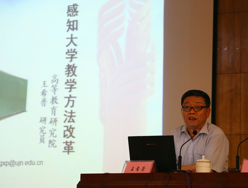 讲座中,王希普研究员以《感知大学教学方法改革》为题,结合自身从事教学的实践经验、所取得的教研成果,就“为何重新感知大学教学方法”、“需要转变哪些大学教育观念”以及“如何评价学生”三个核心问题,对大学教学方法存在的问题以及未来发展趋势进行了深入浅出的讲解和分析。他认为,目前大学教学方法存在问题的原因,既有高等教育发展的历史(环境)、教育价值观、教学管理制度设计制定等方面的客观原因,也有教师的工作理解和学生的评价、师生关系的认识等方面的主观原因。为此,需要大学教师在教学工作中及时转变教育观念,对大学究竟是什么样的教育、大学教师的自身知识构成、教学大纲应该有哪些内容、如何制定人才培养方案等基本问题更新认识和理解,就此他提供了十五条重要教学目标和七条教学实践原则给培训班学员借鉴和参考。关于学生评价,王希普研究员认为,今后学生学习评价会有基于学习过程的评价、学习证据取得多样化、对学生的志向、推理方式、思维习惯等方面的全方位评价三大改革趋势。讲座得到了培训学员的肯定。