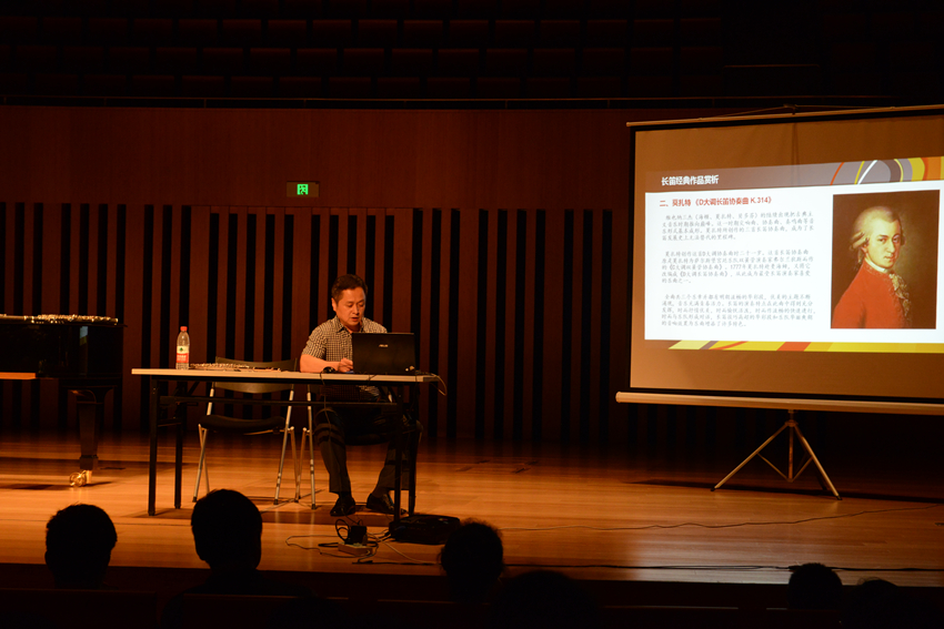 向兆年教授以《“乐界百灵鸟”—长笛知识讲座》为题,从长笛的历史发展脉络,按照西方音乐史的历史分期,对长笛文化及长笛主要代表作品的内容、形式、风格、音乐形象、艺术特点以及作品产生的时代背景,进行了生动而详细的讲述。向兆年教授还通过生动的现场演奏,将对艺术的极致追求和音符的曼妙之美传递给每一位热爱音乐、热爱生活的人。参加活动的学员和老师纷纷表示不虚此行,收益颇丰。
