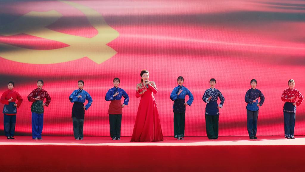 演出中,戏曲学院师生用京剧《红云岗》选段“为亲人细熬鸡汤”歌颂了沂蒙革命老区红色精神永不褪色;京剧《江姐》选段《绣红旗》表达了用丝线绣出中华民族壮丽诗篇的爱国情怀;京歌《中国脊梁》向民族英雄致敬赞美,歌颂了中华民族历经磨难仍巍然屹立的民族精神;原创打击乐曲《黄河入海》奏响了母亲黄河、英雄黄河、革命黄河的时代强音;原创吕剧现代戏《黄河情》围绕黄河滩区乡村振兴、脱贫攻坚的主题,绘就出黄河流域生态保护和高质量发展的美好图景,诠释了共产党员甘于奉献的优秀品质与赓续传承的志愿精神。整场演出高潮迭起、气氛热烈,现场观众对我校师生的精彩表演报以热烈掌声与喝彩。