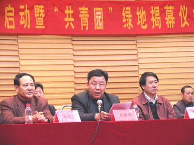 随后,院长张志民为本届大学生科技文化艺术节授旗;党委书记柳文敏为“共青园”学生绿地揭幕。