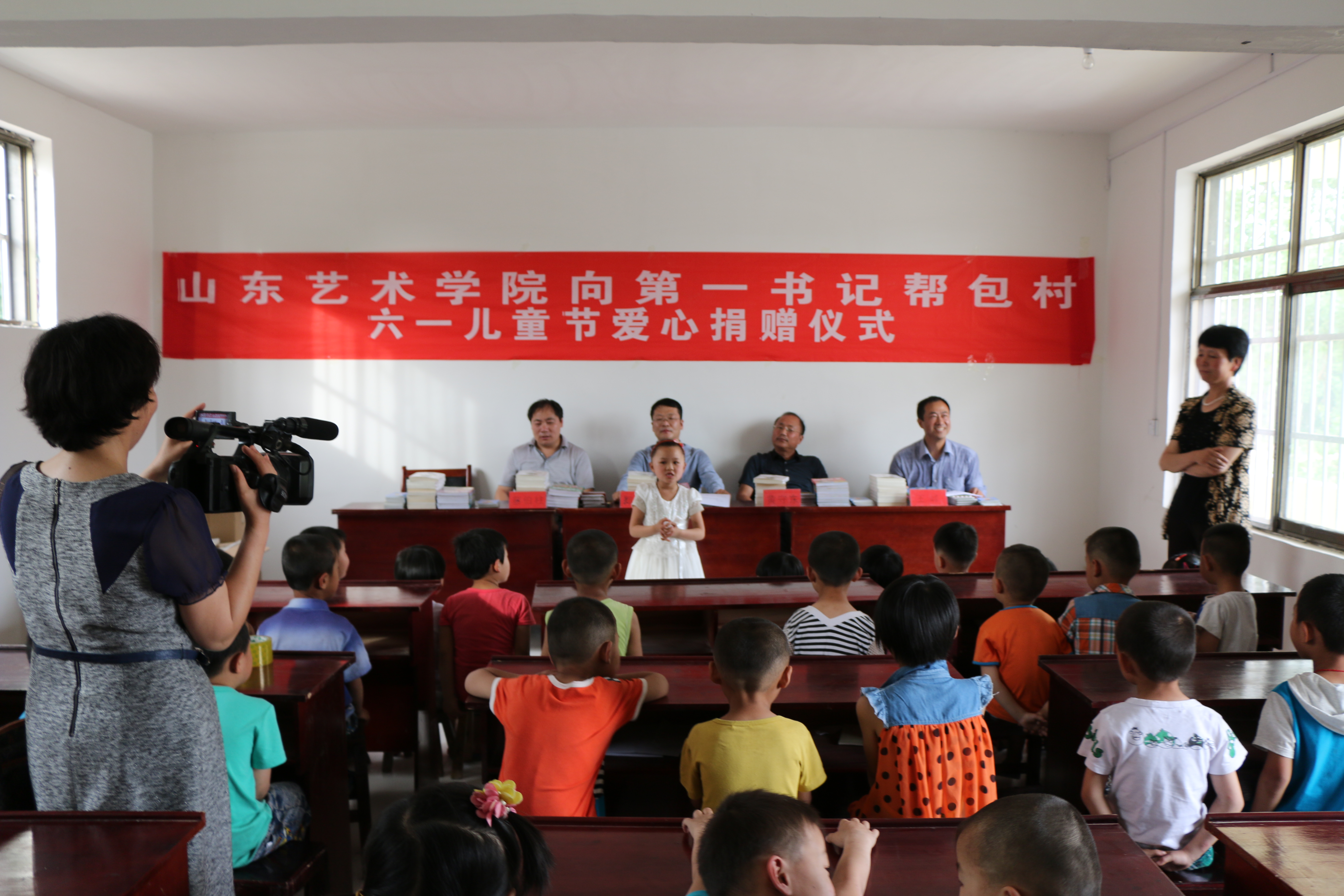 5月29日下午,在第六十五个“六一”国际儿童节到来之际,我校第三批驻郓城县黄集乡“第一书记”向良东村、金店村、姬庄村驻村小学的适龄儿童捐赠图书,用爱心祝福孩子们节日快乐。我校第三批“第一书记”工作组郑华丽、王峰、蔡伯柱,黄集乡人大主任黄守东,良东村支部书记张本存,黄集乡办公室的同志和部分学前班教师代表、学生代表、学生家长代表参加了捐赠活动。