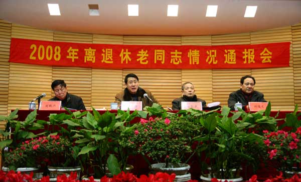 2008年新春佳节到来前夕,为表达学院党委对离退休老同志的深切关怀,1月25日上午,在文东校区大剧场举办了2007年度情况通报会暨新春健身游艺活动。院党委书记柳文敏,院长张志民,党委副书记、纪委书记刘致兴,副院长胡德定等院领导,院离退休领导小组成员,各二级学院、各部门负责人和老干部工作联络员参加了会议,党委书记柳文敏向离退休老同志通报了2007年学院的各项工作情况。大会由党委副书记、纪委书记刘致兴主持。