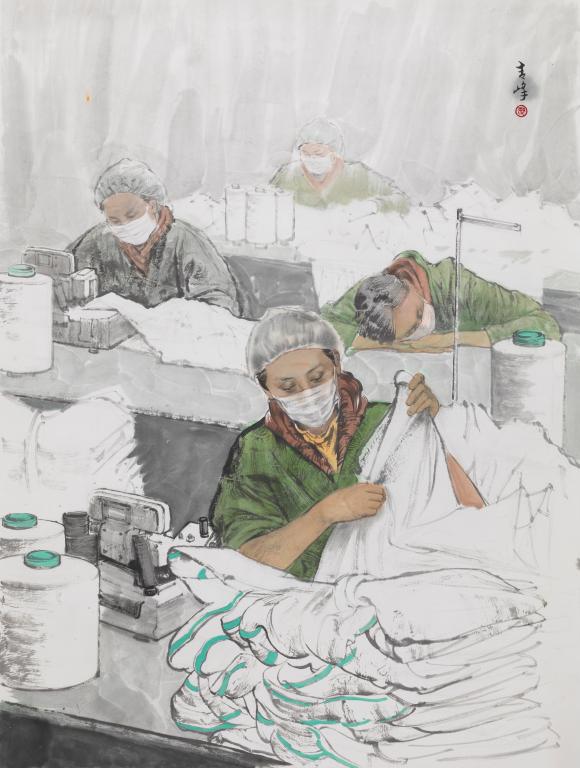 据悉,在2020年疫情期间,封闭在家的徐青峰因没有油画材料,无奈翻出之前的中国画材料尝试国画创作。有感于一批批医护人员、国之卫士舍生忘死、义无反顾投身于疫情防控,徐青峰用自己的真情实感和手中画笔,创作的《国之卫士——钟南山》《李兰娟》《争分夺秒战疫情》(已被国家博物馆收藏)《绽放——护士系列》等作品,是对这些英雄人物最形象最生动的记录,也是对这场伟大的疫情防控阻击战的真实再现,更是艺术家为时代画像、为时代立传、为时代明德的鲜明体现。