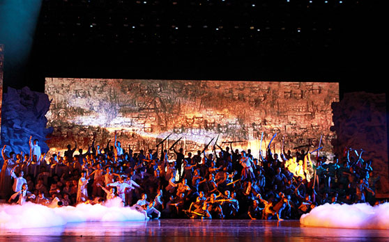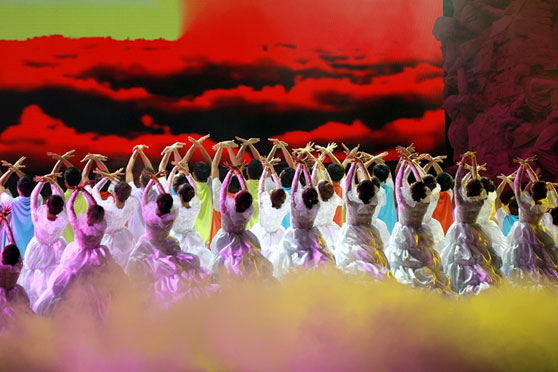 为筹备本次演出,舞蹈学院、戏剧影视学院百余名师生,牺牲暑期宝贵的休息时间,于8月上旬开始排练。排练期间,教师精心编排,巧妙构思,认真指导,学生则积极配合,刻苦练习,迎难而上。晚会合成期间,排练师生更是披星戴月,废寝忘食,日复一日地从清晨奋斗到深夜,竭尽全力把最好的状态投入到排练当中。精彩的演出以艺术的方式体现了他们对伟大的抗战精神和社会主义核心价值观的理解和传承,锤炼了技能,丰富了舞台经验,展现了积极向上的态度与饱满的精神面貌。