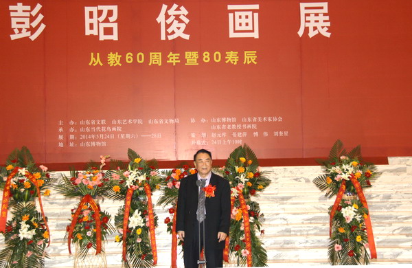 5月24日上午10时,彭昭俊从教60周年暨80寿辰画展在山东省博物馆隆重开幕。山东省原人大常委会主任韩喜凯,山东省老教授书画院院长刘凤龙,山东省博物馆馆长郭思克,威海市教育局党委书记、局长于胜涛,文登师范学校校长丛阳兹,荣成博物馆馆长邹积军,彭昭俊艺术馆馆长林静,我校党委书记李宗伟,院长、山东省美协主席张志民,党委副书记王力克,副院长刘大力、刘晓静、高启光,纪委书记兰绍彤,彭昭俊老师的学生,我校相关专业师生及省诸多书画名家参加了开幕式。开幕式由山东当代花鸟画院副院长王力主持。