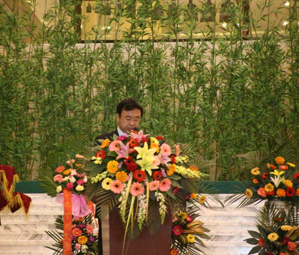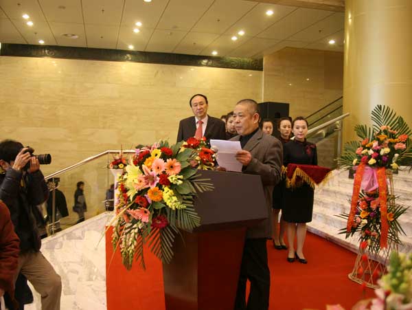 仪式上,省政府副省长黄胜同志讲话。讲话中,黄胜副省长首先代表省委、省人大、省政府和省政协对仪式和开幕式的举行表示热烈祝贺,对于老的家人和亲属表示衷心感谢和崇高敬意。黄胜副省长指出,于希宁先生是我们著名的花鸟画艺术大师和美术教育家,是博大精深的齐鲁文化孕育出的山东文化艺术界的杰出代表,他为我省文化事业的发展做出了重大贡献,2008年省委省政府授予老人“文化艺术终身成就奖”。于老的作品植根齐鲁大地,继承和发扬中国书画艺术精粹,将国魂、花魂、人魂寄情于艺术创作,创造了独具风格、绚丽辉煌的艺术成就,成为20世纪中国画坛的杰出代表人物之一。于老还是山东高等艺术教育的开拓者和学科建设者,他一生热爱艺术教育事业,教书育人,为人师表,追寻人品、学品、画品相统一的艺术实践,极大地丰富了中国画艺术教育事业的视野和内涵,集中展现了一代大师的风范,堪谓“德艺双馨”,后学的表率。“才德勤修养 三魂共一心”,于先生一生对艺术勤奋执着,对学生言传身教,对祖国一片赤诚,他多次向国家和社会捐款和捐赠书画作品,把自己的心血之作无私地奉献给了祖国和人民。今天,先生的亲人遵从先生的遗愿,将47幅精品力作,无偿地赠予山东博物馆新馆,这就再次展现出先生梅花般的高洁品格和胸襟,这些画作不仅丰富了博物馆的馆藏,增添了文化亮点,更为后人缅怀和研究先生的光辉艺术历程,感念和学习先生的高尚画品和人品,提供了宝贵财富。