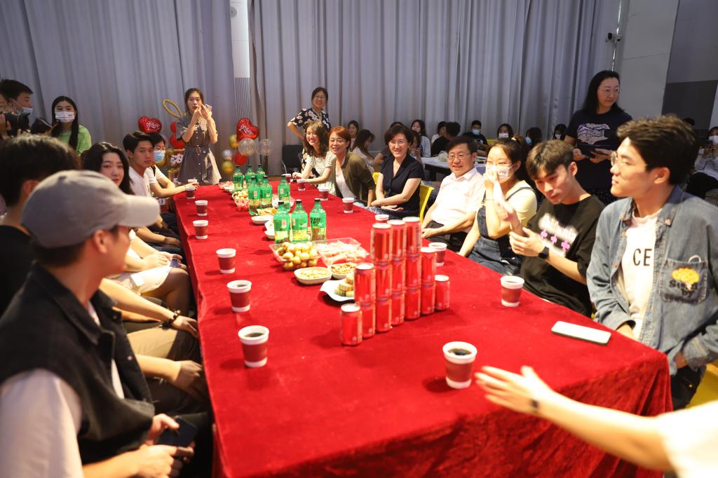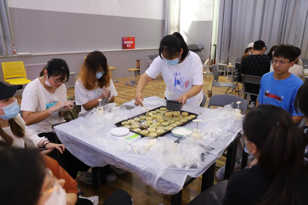 大家在现场用带有校标的模具制作了美味的月饼,取馅儿、称重、包月饼皮、定型……大家也现场体会到了“自己动手,丰衣足食”的感觉,更是一堂生动的劳动教育体验课。现场欢声笑语不断,学生社团地球王乐队的表演将现场气氛推向高潮。
