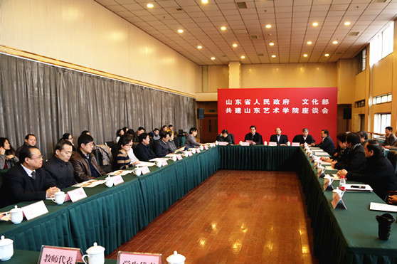 1月13日下午,山东省人民政府、文化部共建山东艺术学院座谈会暨省部共建签约仪式在山东艺术学院文东校区综合楼四楼会议室隆重举行。国家文化部副部长董伟,山东省副省长出席仪式,共同签署共建协议并发表重要讲话。