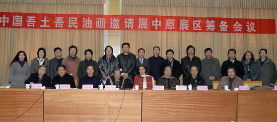 吾土吾民系列油画邀请展是由中国油画艺委会发起主办的全国性大型系列油画邀请展,自2009年启动以来,已经先后举办了西北、东北、华东、华南、西南片区的展览,2013年将在山东举办中原片区(北京、天津、山东、山西、河南、河北)的大型展览。吾土吾民系列油画邀请展从形式到内涵均不同于通常的全国性美展,更侧重于从文化的角度梳理中国油画百年来的内在精神,以策展和邀请的方式侧重于作品的选择,同时注重理论总结与画家作品的深度结合,突出文化精神。邀请展还同时组织国际性学术研讨会,专题研讨油画中国化的相关议题。为办好吾土吾民系列油画邀请展的收官之展,中国油画艺委会专程来济南召开中原展筹备会议。