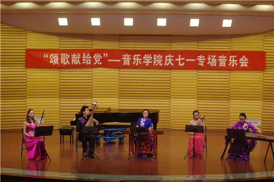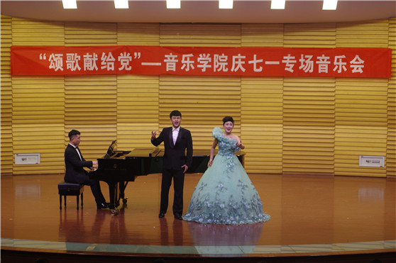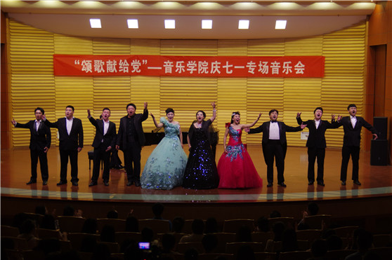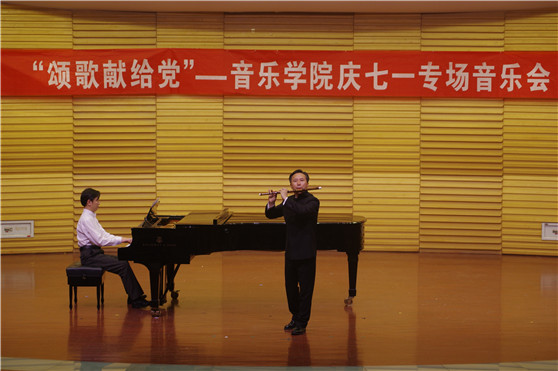 6月30日晚,艺术剧场一楼音乐厅座无虚席,掌声雷动、群情激昂,音乐学院党总支为落实学校党委党风廉政建设和“三严三实”工作要求,由各党支部师生积极参与,精心准备了一场名为“颂歌献给党”——庆七·一专场音乐会,演职人员以高水准的艺术演绎和饱满的创作热情向伟大的中国共产党致以最诚挚的祝福!学校纪委书记兰绍彤,相关职能部门负责人观看了演出。