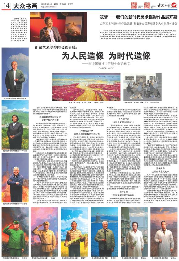近日,山东艺术学院院长徐青峰接受了本报记者的专访,以《党和国家功勋荣誉表彰》组画为例,讲述了“筑梦——我们的新时代美术摄影作品展”主题创作背后的故事。