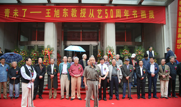 9月19日上午9时30分,青未了——王旭东教授从艺50周年书画展在省美术馆开幕。原山东省委书记赵志浩,原省政协副主席丁方明,省政协副主席崔惟林,原省政协副主席朱铭,原省委组织部副部长、省老年书画研究会会长王光先,原省委宣传部副部长、省文联主席王风胜,山东省广播电影电视局局长刘长允,原山东工艺美术学院院长张逸民,济南市政协副主席、统战部部长杨庆林,山东省文联名誉主席、省美协名誉主席、山东画院院长刘宝纯、原济南市政协副主席、济南市文联主席吴泽浩等应邀出席开幕式并为画展剪彩。本次画展由山东艺术学院、山东省美术馆、山东省美术家协会共同主办。省美协主席、我校院长张志民在开幕式上致辞。开幕式由我校副院长胡德定主持。