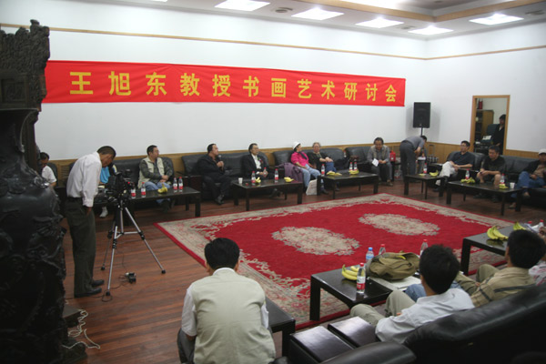 开幕式之后,王旭东教授书画艺术研讨会在省美术馆举行,我校设计学院刘玉泉教授主持研讨会。参加研讨会的专家有吴泽浩、单应桂、陈凤玉、史振峰、杨文仁、谭英林、丁宁原、高延军、毛岱宗、张丽华、韩菊生、孙笑运、马林春、刘东等数十位画界的专家教授,专家们围绕王旭东教授的人品、画品、从艺之路、创作态度、艺术影响、教学成就等方面展开了广泛而深入的研讨。