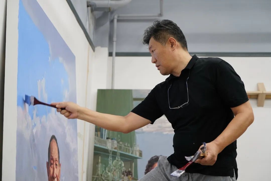 徐青峰:作为艺术家,同时也是美术教育工作者,我非常明白现在的孩子们需要崇拜谁,并且一直在探究高校的思政课应该如何上。比如,我们会在开学后安排大一新生现场观摩这一系列作品的创作,然后请创作团队的成员谈体会。就这时所讲的内容而言,学生是可以听进去的,因为他们本身就是美术专业的,不自觉地就想要了解画中人物的相关信息。画家在创作人物画之前,先要了解人物的经历。这一过程中形成的教育意义远比安排学生去读一些条文要来得更加直接。