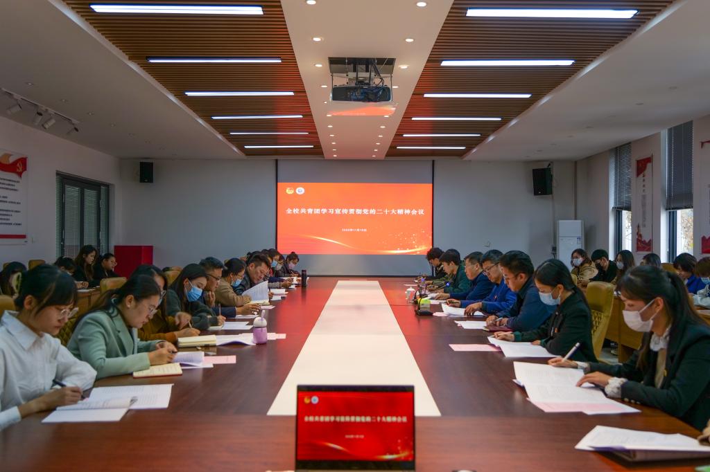 会上,全文学习了党的二十大报告,传达了学校党委(扩大)会议、全省共青团系统学习宣传贯彻党的二十大精神,并结合重点工作对全校共青团学习宣传贯彻工作作出部署。