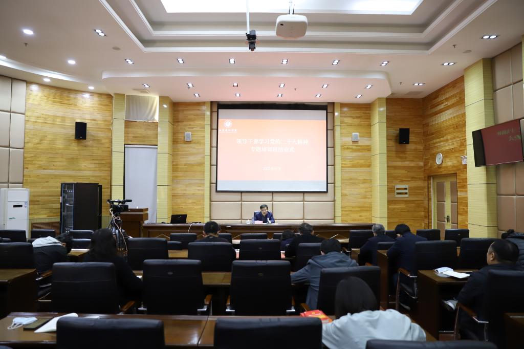 11月25日下午,学校领导干部学习党的二十大精神专题培训班在长清校区举行结业式。党委副书记杨西国出席并讲话,党委委员、组织部部长孔亮主持结业式,部分中层正职干部及全体在校中层副职干部通过线上线下结合的方式参加结业式。