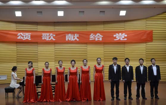 为迎接中国共产党成立95周年,6 月16日晚,由音乐教育学院主办的庆祝中国共产党成立95周年“颂歌献给党”主题音乐会在文东校区音乐厅举行。
