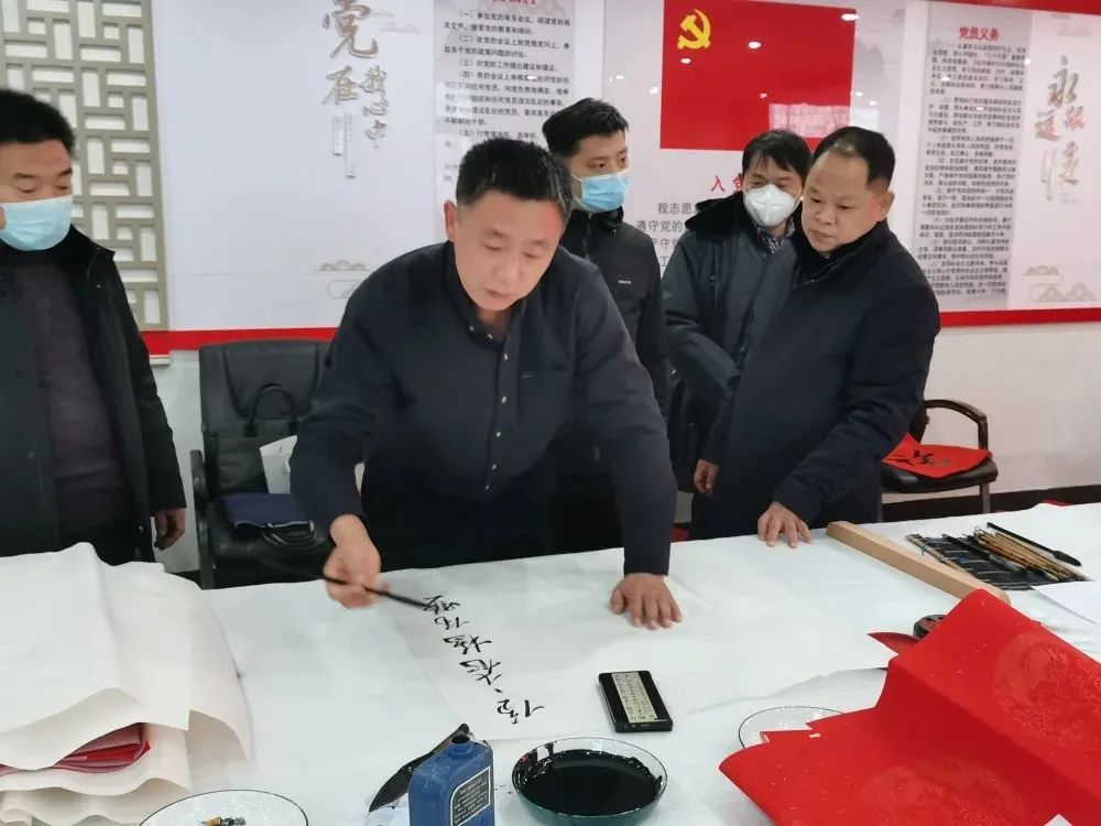 孔维克一行先后来到沙土集战役纪念馆、第一书记产业项目——沙土镇电子商务公共服务中心参观学习。在沙土镇政府,开展了“我们的中国梦 文化进万家”山东画院书画家慰问第一书记送福字写春联笔会活动,以对革命烈士的无限敬仰之情和对实现人民美好生活向往的无限憧憬,现场创作多幅春联、福字,为沙土镇和我校第一书记送上有温度、有分量的“文化年货”。