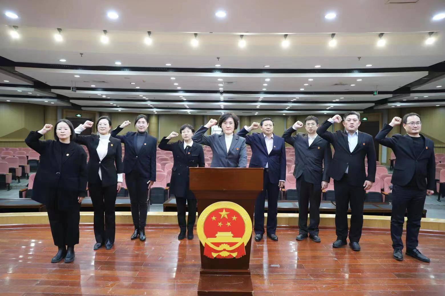 仪式现场国徽高悬、国歌嘹亮,宣誓台上摆放着《中华人民共和国宪法》,气氛庄严热烈。“我宣誓:忠于中华人民共和国宪法,维护宪法权威,履行法定职责,忠于祖国、忠于人民,恪尽职守、廉洁奉公……”领誓人左手按宪法,右手举拳,领诵誓词。全体人员面向国旗,列队肃立,右手举拳,跟诵誓词,向宪法和人民作出神圣而庄严的承诺。