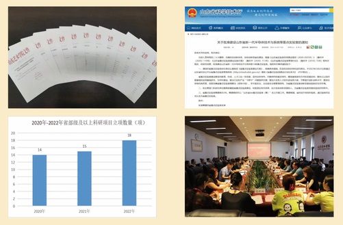 2022年,是学校持续推进高质量发展的一年,也是我校哲学社会科学工作全面繁荣的一年。2022年,科研处制定了12项管理文件,进一步健全了科研工作管理制度体系;获批包括山东省重点实验室在内的5个省部级科研平台,实现了历史性突破;获批3个省级科研团队,积极开展有组织科研;立项113项科研项目,总立项数量提升30%,省部级以上项目立项数量提升20%;获得19项厅局级以上科研成果奖励,实现了获奖类别的突破;学校教师发表核心及以上论文126篇,其中C刊论文87篇,创近三年来新高,增长率为52%;完成科研项目结项148项,不断强化过程管理。过往皆为序章,来日方值期许。2023新的一年新的开始,我们将乘势而上开新局,凝心聚力再出发,犯其至难而图其至远,脚踏实地走好2023新征程。