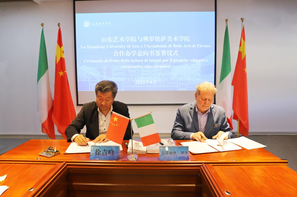 4月8日上午,我校与意大利佛罗伦萨美术学院合作办学意向书签约仪式在长清校区举行。意大利佛罗伦萨美术学院院长Claudio Rocca 教授,山东艺术学院院长徐青峰代表双方致辞并签署合作办学意向书。山东艺术学院原院长王力克、学校知名校友、意大利国家艺术院终身院士、法国国家艺术军团勋章获得者王衍成,TIAC国际艺术文化组织主席郭琳出席活动,党委委员、副院长荆雷主持签约仪式,相关单位负责人参加活动。