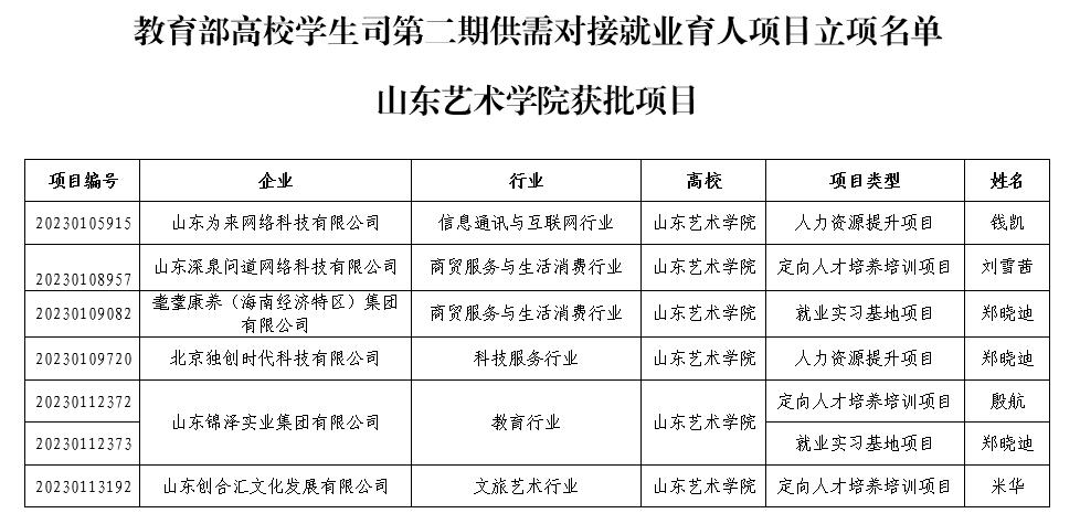 近日,教育部高校学生司公布了第二期供需对接就业育人项目立项名单,我校7个项目获准立项,分布在信息通讯与互联网、商贸服务与生活消费、科技服务、教育和文旅艺术等5个行业。其中,城市艺术与创意学院教师钱凯、设计学院副教授郑晓迪获批人力资源提升项目,设计学院副教授刘雪茜、殷航、米华获批定向人才培养培训项目,郑晓迪获批就业实习基地项目2个。