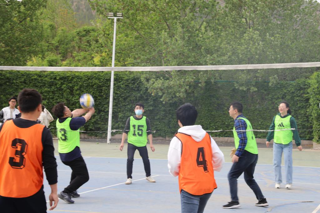 首场比赛由后勤管理处代表队对阵机关党群联队,传媒学院代表队对阵书法学院代表队。赛场上,队员们奋力拼搏,配合默契,场下啦啦队热情高涨,气氛紧张而热烈,大家在感受春天美好季节的同时,共享气排球运动带来的激情与快乐。