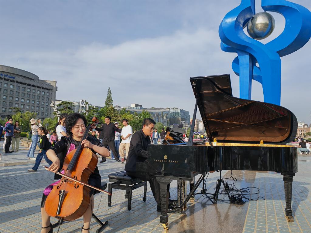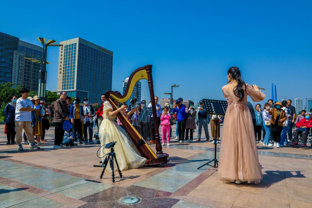 为深入开展学习贯彻习近平新时代中国特色社会主义思想主题教育,纪念中共中央“五一”口号发布75周年,4月30日至5月2日,由山东艺术学院党委统战部、山艺欧美同学会主办,音乐学院承办的音乐快闪活动在济南泉城广场火热开展。这也是音乐学院“爱心音乐厅”品牌服务社会系列活动之一。