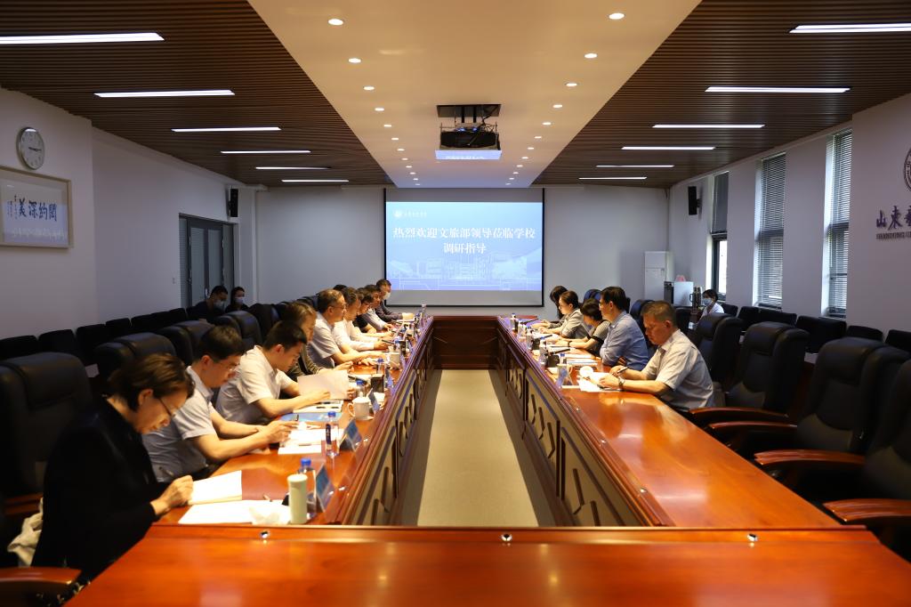 5月15日,文化和旅游部科技教育司副司长刘冬妍、三级调研员杨琼来我校考察调研。省文化和旅游厅党组成员、副厅长王炳春,科技教育处处长朱军,四级调研员刘艳陪同调研。学校党委书记王洪禹,院长徐青峰,党委委员、副院长荆雷,党委委员孔亮、孔宪坤出席活动,党办院办、发展规划处、艺术管理学院、戏曲学院等相关部门负责人参加活动。