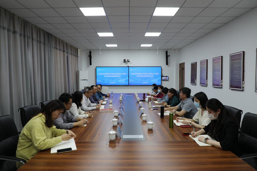 5月19日,安徽艺术学院马克思主义学院直属党支部书记、院长吴孔铎一行7人来我校调研交流。学校党委书记王洪禹在座谈会前会见了吴孔铎一行,对其来校调研交流表示欢迎,并简要介绍了我校在办学历史、办学规模、艺术实践与创作等方面的情况。马克思主义学院党政领导班子、科级以上干部、教研室主任以及教师代表参加调研座谈会。