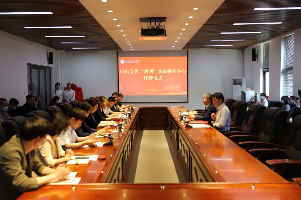 5月24日,山东文化“两创”实践研究中心揭牌仪式在我校举行。山东省人大监察和司法委员会原副主任委员、山东省委宣传部原副部长、文化厅原厅长徐向红,山东省社科联一级巡视员张宏明,山东艺术学院副院长刘晓静,党委委员、副院长荆雷,党委委员孔亮、孔宪坤出席活动。学校各二级学院和相关职能部门负责人参加活动。揭牌仪式由荆雷主持。