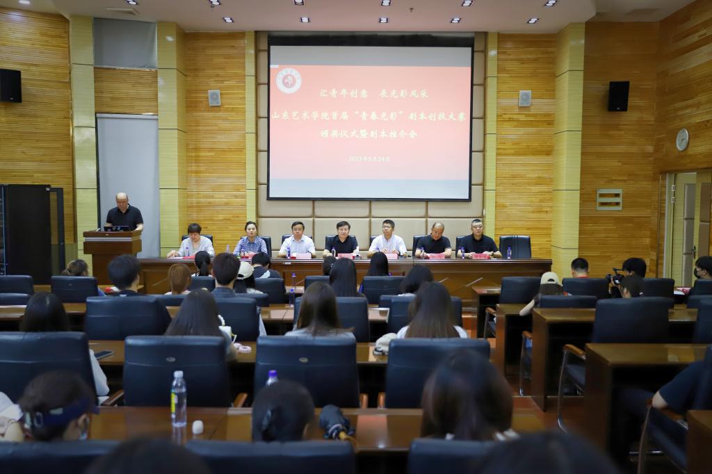 5月24日,我校首届“青春光影”剧本创投大赛颁奖仪式暨作品推介会在长清校区举行。党委副书记杨西国出席仪式并讲话。山东金声玉润影视有限公司董事长郭子润、总经理陈伟,团委、电影学院相关负责同志出席活动。获奖作品学生代表,相关二级学院团总支老师和专业学生代表参加活动。