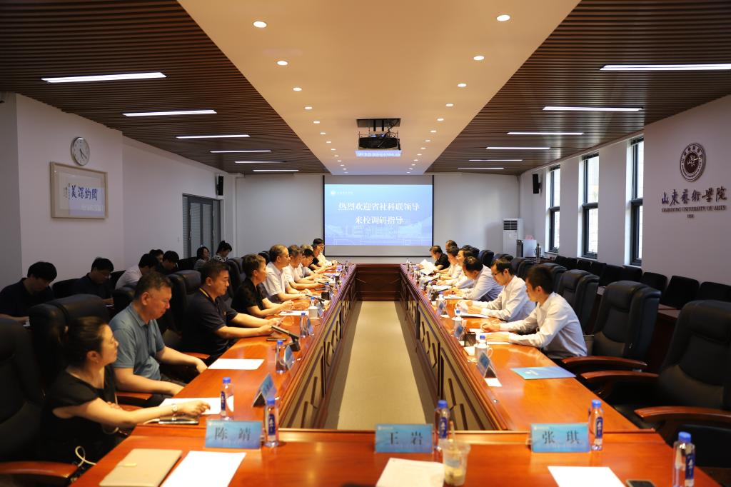 6月9日,省社科联党组书记、副主席刘为民,党组成员、副主席杨宗杰一行来我校调研座谈。学校党委书记王洪禹,院长徐青峰,党委委员、副院长荆雷,党委委员、宣传部部长孔宪坤出席座谈会。