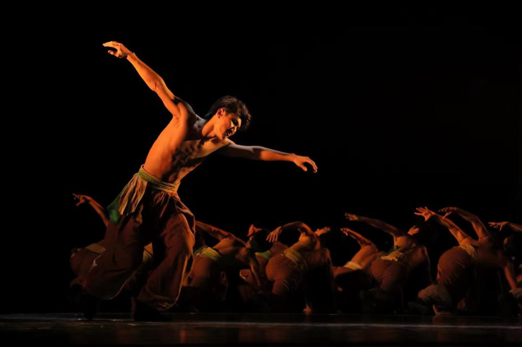 群舞《日当午》由我校舞蹈学院副教授王森和北京四革马艺术工作室艺术总监谢长慧共同编创。该作品以质朴的动态形象呈现出一幅劳动人民“面朝黄土,背朝天”的劳作画面。烈日灼心的疲惫,凝练出岁月的痕迹,映射着人们对幸福生活的渴望,表现了农耕文化下铸就的坚韧品格与奋斗不息的民族精神。