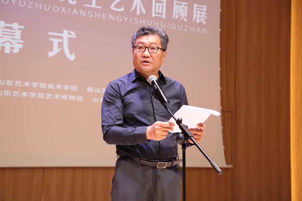 徐青峰在致辞中指出,赵玉琢先生是山艺美术教育传统的开创者和坚守者。他精研艺理,锤炼画技,把经典美术传统置入山艺教学中。他举贤荐能,培养人才,夯实教师队伍,为山艺美术教育发展奠定了坚实基础。特别是,赵玉琢先生淡泊名利,耿介自持,为教育事业无私奉献,这种精神品格是山艺美术教育传统内化为人格精神的生动体现。赵玉琢先生对艺术孜孜不倦的研究令人叹为观止,堪为当代师生学习的榜样。师生们要在观展的过程中受到教育,提升对艺术的认识,培养优秀的精神品格,把我校的美术教育传统继承下去,发扬光大。他表示,为老一辈艺术教育家举办展览,梳理山艺美术教育传统,是山艺65周年校庆系列活动的重要组成部分,也是进行校史研究,推动教育发展的重要举措。