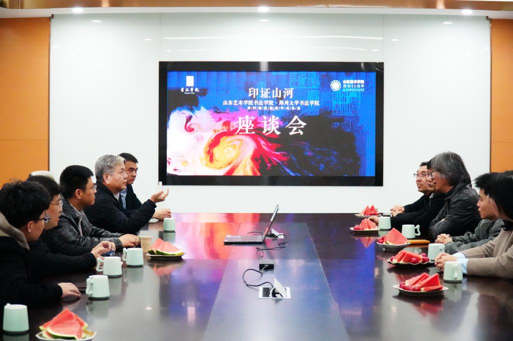 开幕式前,举行了书法学科发展及篆刻教学座谈会,双方就进一步发掘两省特有的金石文化资源,书法学科升级与专业方向设置、教学机构与科研平台和课程建设等方面进行了深入广泛的交流。