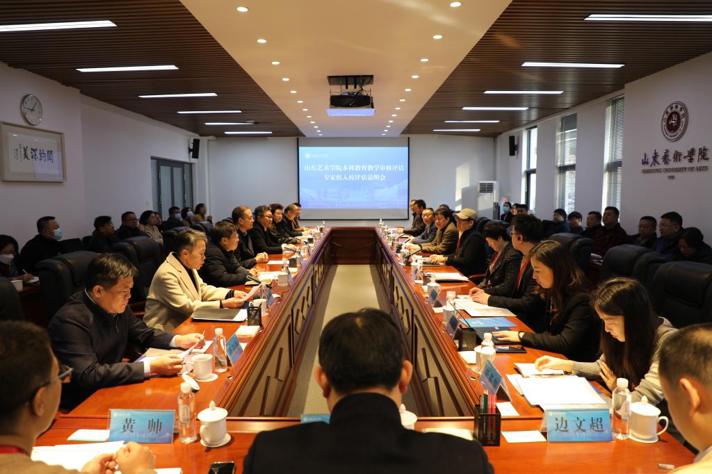 12月4日,学校在长清校区召开新一轮本科教育教学审核评估专家入校评估说明会。审核评估专家组组长、南京艺术学院原院长刘伟冬,专家组副组长、教育部戏剧影视类专业教指委主任、北京师范大学艺术教育研究中心主任周星,专家组成员湖北美术学院原院长许奋,吉林艺术学院副院长邹毅,山东工艺美术学院副院长孙大刚,上海音乐学院党委常委、宣传部部长、党委办公室主任汤隽杰,北京舞蹈学院教务处处长胡淮北,齐鲁师范学院教学质量监控与评估处处长宗美娟,德州学院美术学院副书记、副院长王鹤,项目管理员德州学院教务处副处长宋广元,专家组秘书德州学院教务处教务科科长黄帅、山东交通学院教学督导室主任边文超,山东省教育厅高等教育处干部张英慧,学校党政班子成员出席会议。