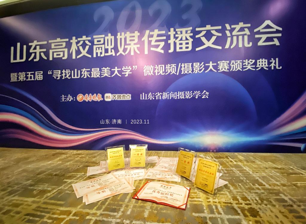 11月29日,齐鲁晚报·齐鲁壹点与山东省新闻摄影学会联合主办山东高校融媒传播交流会暨第五届“寻找山东最美大学”微视频/摄影大赛颁奖典礼。我校荣获“2023年度融媒传播创意高校”奖和优秀组织奖。我校学生作品获微视频类作品奖项一等奖1件,二等奖3件,三等奖1件,佳作奖3件,最佳视觉效果奖2件,优质网络人气奖2件;摄影类一等奖1件,二等奖2件,三等奖2件,佳作奖1件,优质网络人气奖1件。我校教师获齐鲁晚报2023年优秀通讯员。