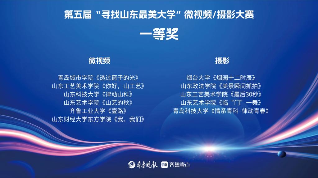 据悉“寻找山东最美大学”微视频/摄影大赛是齐鲁晚报・齐鲁壹点自2019年开始发起的品牌活动。活动的初衷是展现山东高校风采,展示山东大学生的青春与活力,促进美丽文明校园建设。10月11日,第五届“寻找山东最美大学”微视频/摄影大赛正式启动,由齐鲁晚报·齐鲁壹点联合山东省新闻摄影学会共同举办,本次大赛主题是“律动校园”。大赛启动以来,全省高校学生积极参与,大赛组委会共收到各种微视频以及摄影作品1300余件,经过初审、作品展示、专家评审、网络投票,最终91件微视频、87件摄影作品获得专家评审奖,15件作品获专家评审单项奖。另有20件视频作品、20件摄影作品获得网络人气奖。