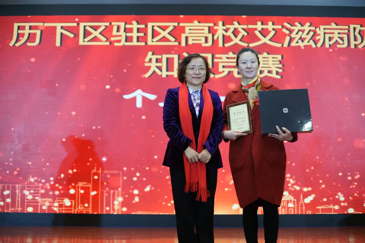 在驻区高校艾滋病防治知识竞赛环节,来自山东大学、山东师范大学、山东中医药大学、山东财经大学、山东艺术学院、山东政法学院、山东传媒职业学院的7支代表队参与角逐。我校代表队荣获团体二等奖,医务室副主任医师谢芬荣获个人一等奖。